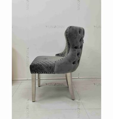 O jantar de Gray Power Lion Button Heavy preside os pés de aço inoxidável de prata
