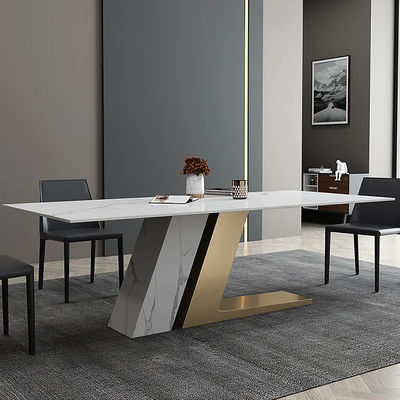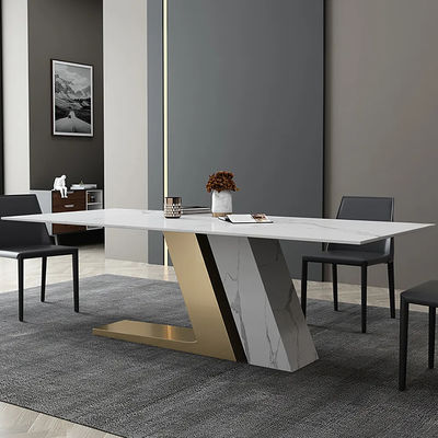 Nós podemos sentar-se na tabela e apreciar uma refeição maravilhosa, compartilhando dos eventos pequenos do dia em torno da tabela. Nós adotamos a tecnologia alto-temperatura-resistente nova da placa da rocha, com pés folheados a ouro de aço inoxidável da tabela de desenho do fio, e reforçamos os pés de pedra grossos super da tabela da placa da rocha do cais, o teste padrão podemos apoiar a personalização.