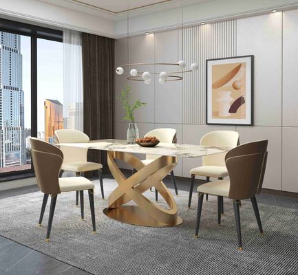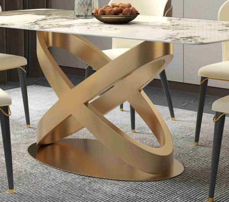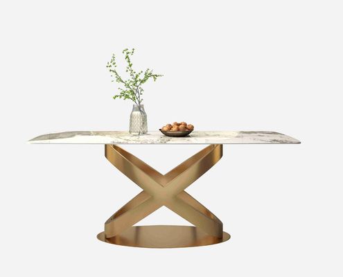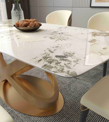 Mesa de jantar de pedra retangular branca moderna com os suportes de bronze do projeto novo