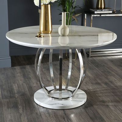 Mesa de jantar de prata de aço inoxidável superior de mármore saboroso dos ss com grupo das cadeiras