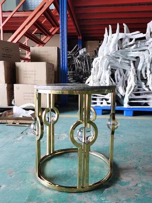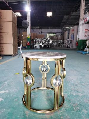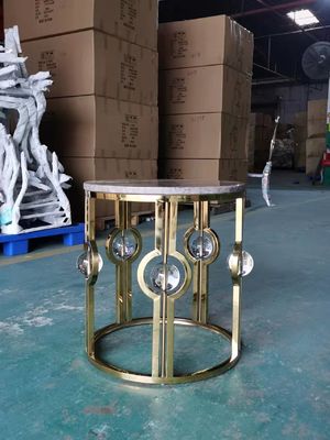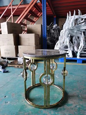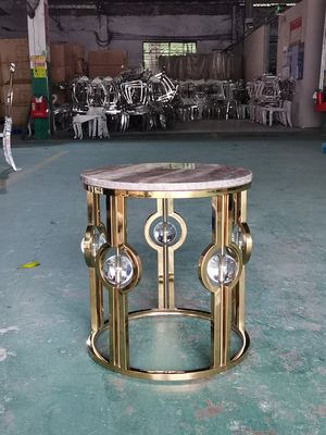 De canto redonda bola de cristal luxuosa leve de mármore de aço inoxidável folheado a ouro do metal da tabela do lado