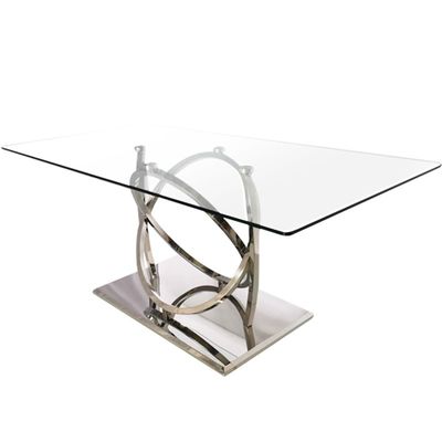 Mesa de jantar de prata luxuosa do metal com vidro claro para a sala de jantar