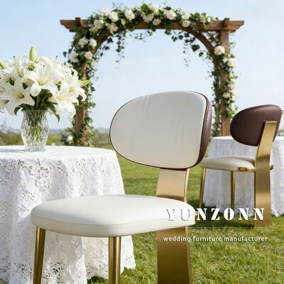 Cadeiras de evento de luxo modernas Minimalista Quadro de aço inoxidável dourado PU Cadeira de casamento de couro para evento |