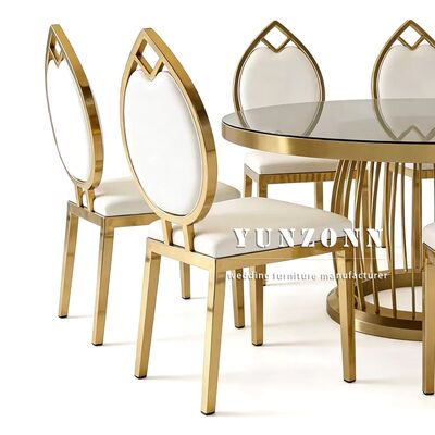 | Nome do produto: | Cadeiras de casamento brancas de evento de chaise de luxo para festa de noiva King Queen de couro com estrutura de aço inoxidável dourado |
