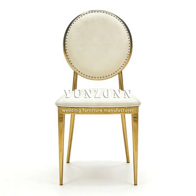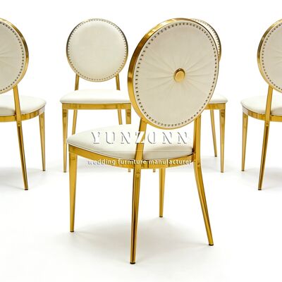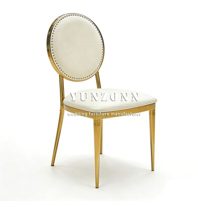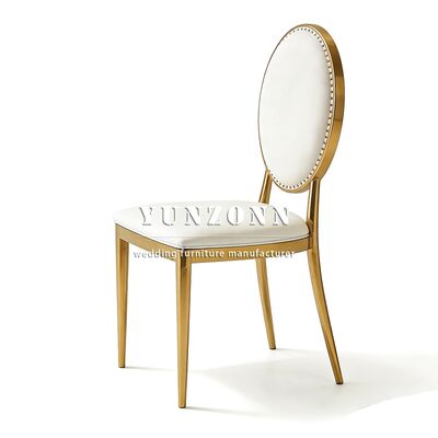 | Nome do produto: | SCadeira de casamento durável de couro PU branco de luxo em aço inoxidável para uso em sala de jantar de hotel, villa ao ar livre, sala de estar com design moderno |