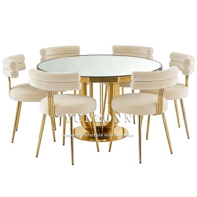Q3: Qual é o material dos seus produtos? A3: Mesa e cadeira em aço inoxidável, vidro endurecido na mesa; mármore ou madeira.