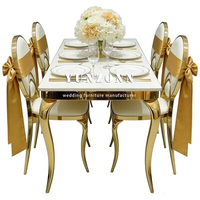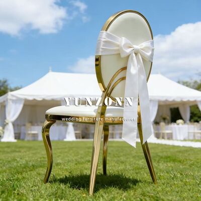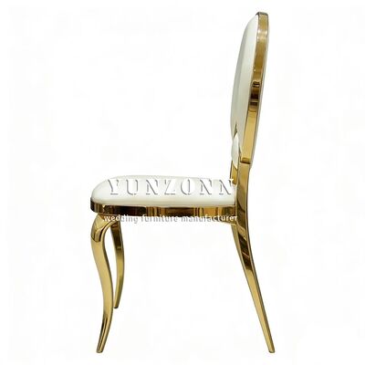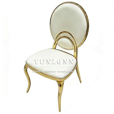 | Nome do produto: | Móveis para eventos de festa de casamento de hotel baratos Cadeira de jantar redonda com encosto em aço inoxidável dourado com almofada de PU branca para noivos |