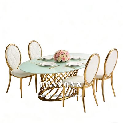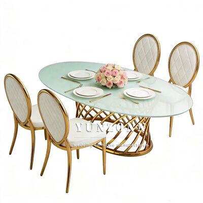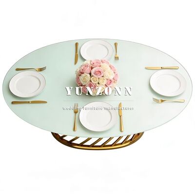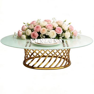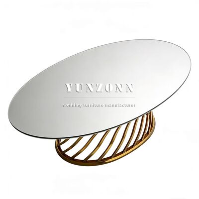 | Nome do Produto: | Tampo de Vidro Espelhado de Boa Qualidade com Mesa Oval de Aço Inoxidável para Casamento, Jantar, Banquete e Festa |