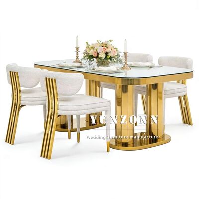 | Product Name: | Wholesale Rectangle Banquet Mirror Glass Top Stainless Steel Table Gold Wedding Events Hotels Dining Furniture |