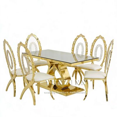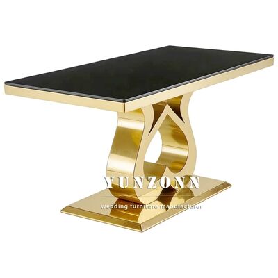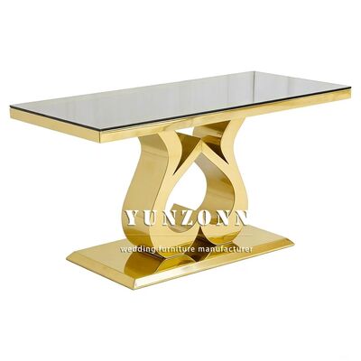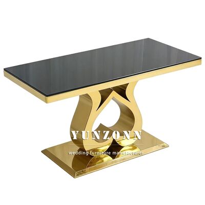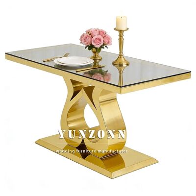 | Nome do Produto: | Móveis Baratos para Eventos de Hotel, Festa, Mesa para Noivos, Noiva e Noivo, Aço Inoxidável Dourado, Tampo de Vidro, Mesas de Jantar Retangulares para Casamento |