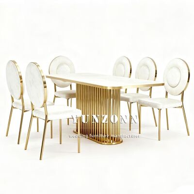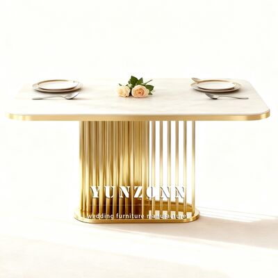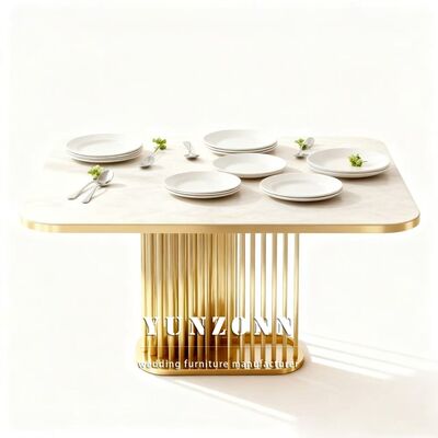 | Nome do produto: | Hotel Banquete de casamento Aço inoxidável Marmore Top Outdoor Event Table Design durável contemporâneo Mobiliário de aluguer |