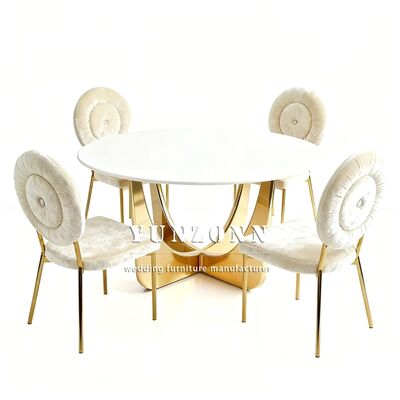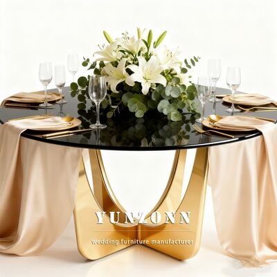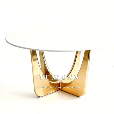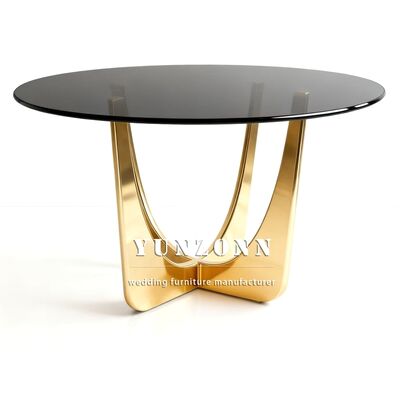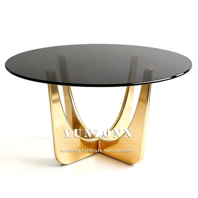 | Nome do Produto: | Mesa de Jantar de Luxo Redonda em Aço Inoxidável para Casamentos e Eventos com Tampo de Vidro Dourado |