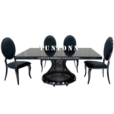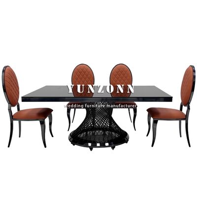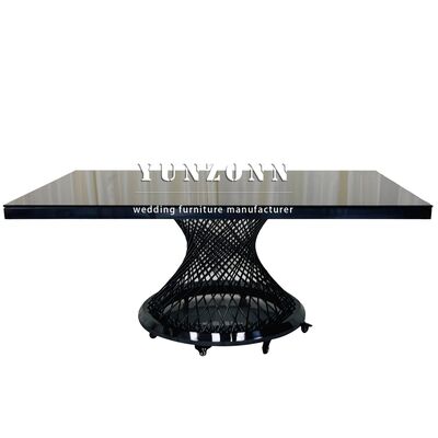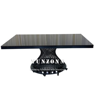 Mesa de Jantar Retangular de Metal em Aço Inoxidável com Tampo de Vidro Preto para Hotel e Casamento
