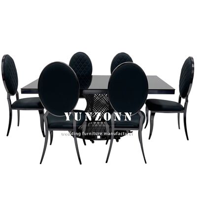 | Nome do Produto: | Mesa de Jantar Retangular de Metal em Aço Inoxidável com Tampo de Vidro Preto para Hotel e Casamento |