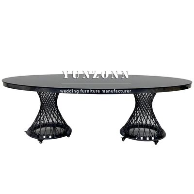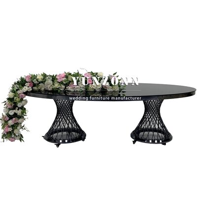 Decorar Casamento Luxo Mesa de Casamento de Aço Inoxidável Preta Mesa Móvel de Casamento Oval
