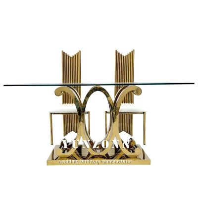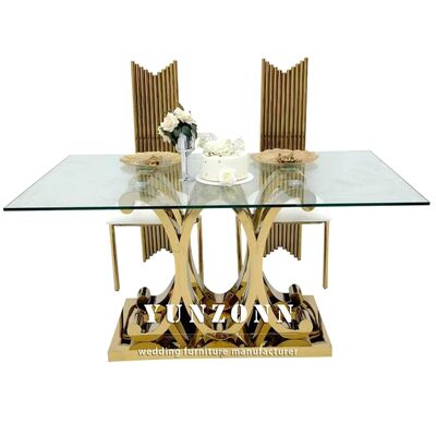 | Nome do Produto: | Conjunto de Mesas de Jantar Retangulares de Luxo Moderno com Pés Dourados, Decoração de Vidro, Mesas de Aço Inoxidável para Eventos, Decorações de Banquete de Casamento |