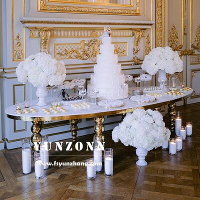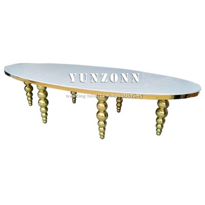 Mesa Oval de Mobiliário de Casamento em MDF Branco com Pés de Aço Inoxidável para Eventos de Festa