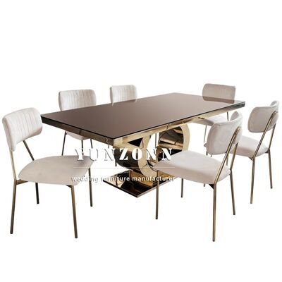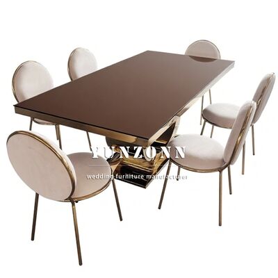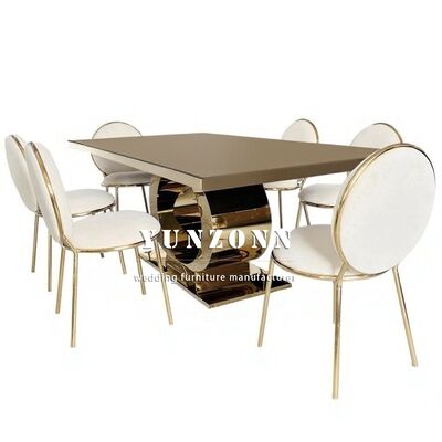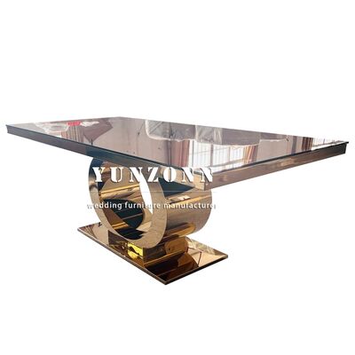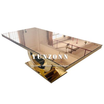 | Nome do Produto: | Mesa de Casamento de Luxo Mais Vendida com Base Redonda em Aço Inoxidável Dourado e Tampo de Vidro Espelhado Design Moderno Mobiliário de Hotel |