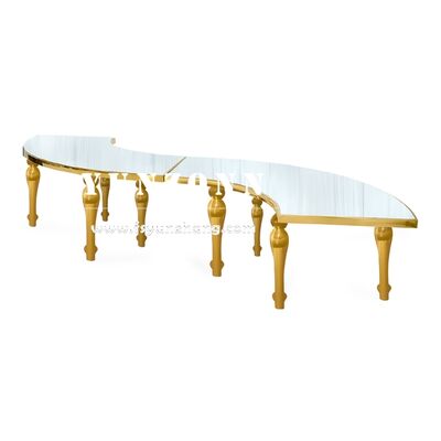 | Nome do produto: | Quadro em ouro/branco/preto de aço inoxidável Meio círculo Serpentine Banquete de casamento Centro de jantar Mesa sala de estar Mobiliário de hotel | ||