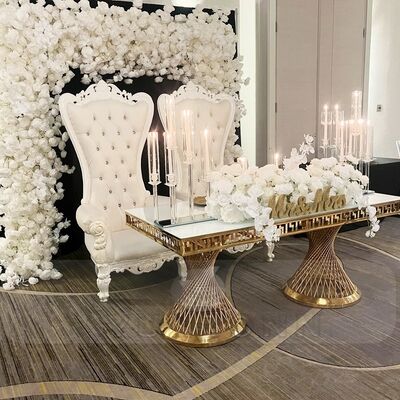 | Nome do produto: | Customize Ouro de aço inoxidável Mesas de casamento retangulares Design de metal moderno para refeições Restaurantes Festas Hotéis Salões |