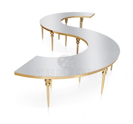 | Nome do Produto: | Conjunto de Mesa de Jantar em Forma de S Moderna com Cadeiras para Restaurante, Casamento, Vidro, Metal, Mobiliário de Hotel para Uso em Salão Externo |