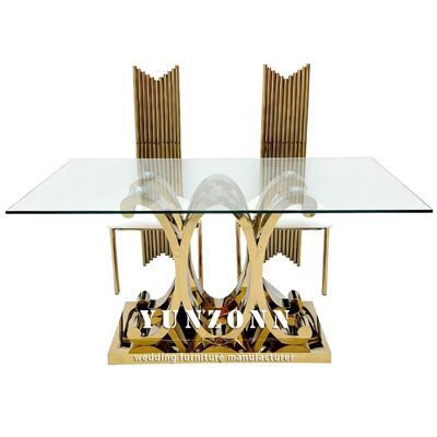 | Nome do Produto: | Conjuntos de Mesa de Jantar de Luxo em Aço Inoxidável Dourado Especial com Vidro para Noivos para Eventos de Casamento e Uso em Hotéis |