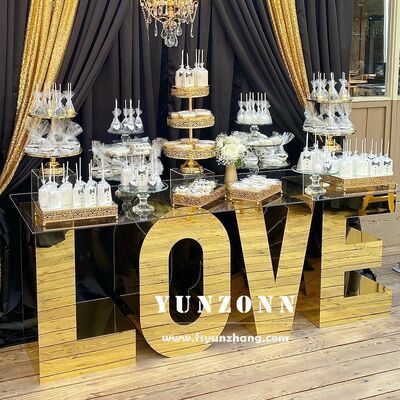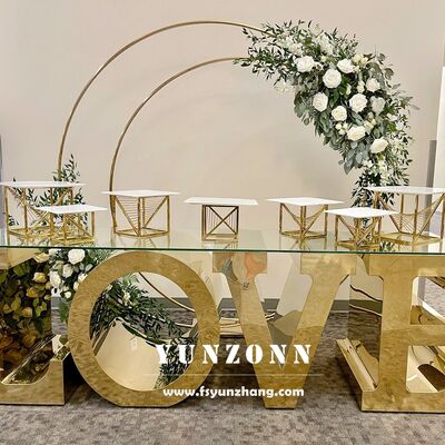 | Nome do Produto: | Promoção Quente Centro de Mesa Dourado em Aço Inoxidável para Eventos de Casamento Elegante Mobiliário de Mesa de Amor para Hotéis |