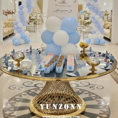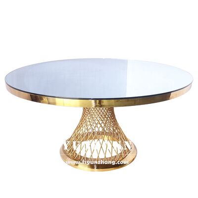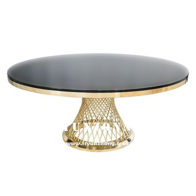 | Nome do produto: | Mobiliário de luxo Eventos de festa Glod aço inoxidável vidro rede de pesca banquete sala redonda mesas para casamento |