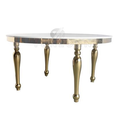 | Nome do produto: | Mesa redonda moderna com MDF branco e base de aço inoxidável para hotéis Casamentos Eventos ao ar livre |