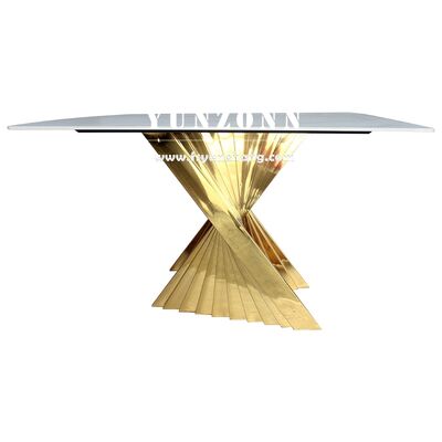 | Nome do produto: | Luxo de alta qualidade ouro / prata de aço inoxidável casamento mesa de jantar com vidro temperado |