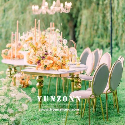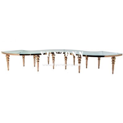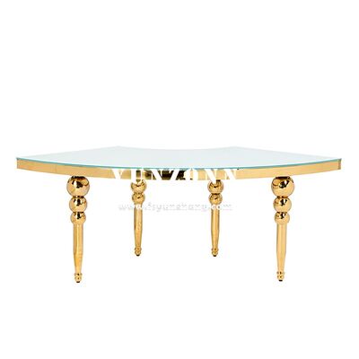 | Product Name: | Stainless Steel Moon Wedding Dining Table with Half round Glass Top for Banquets Living Rooms Halls Hotels Hotel Furniture |