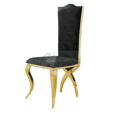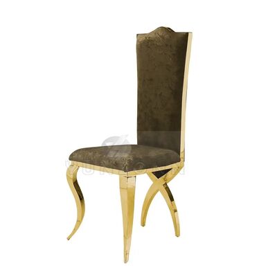 | Nome do Produto: | Cadeira de Jantar de Luxo com Encosto Alto em Aço Inoxidável Dourado com Pernas Cruzadas para Hotéis e Casamentos |