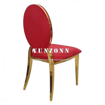 | Nome do produto: | Novo Modelo Royal Gold Wedding Round Back Chairs aço inoxidável com veludo vermelho estilo moderno para eventos ao ar livre hotéis bares |