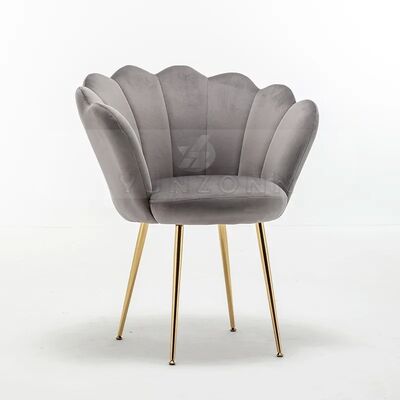 | Nome do produto: | Designer nórdico Cadeira de jantar de veludo cinza Forma de concha de volta perna de ouro Poltrona individual Sala de estar Hotel ginásio-tapeteado de metal |