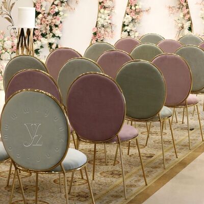| Nome do Produto: | Cadeiras de veludo com base de metal redonda em latão e aço inoxidável, cadeira de jantar moderna, cadeiras de restaurante de luxo |